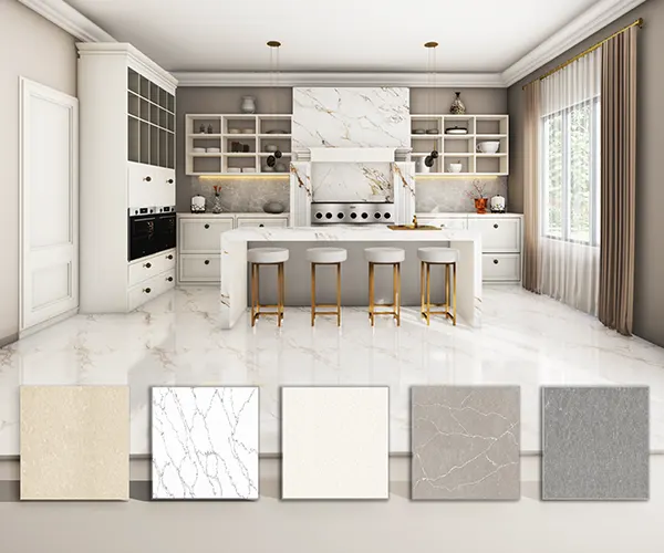 Our slabs are crafted using premium-grade pure natural quartz and high-quality polyester resin, ensuring unmatched strength, durability, and colour consistency. By incorporating the finest unleaded pigments, we guarantee exceptional colour accuracy from batch to batch.